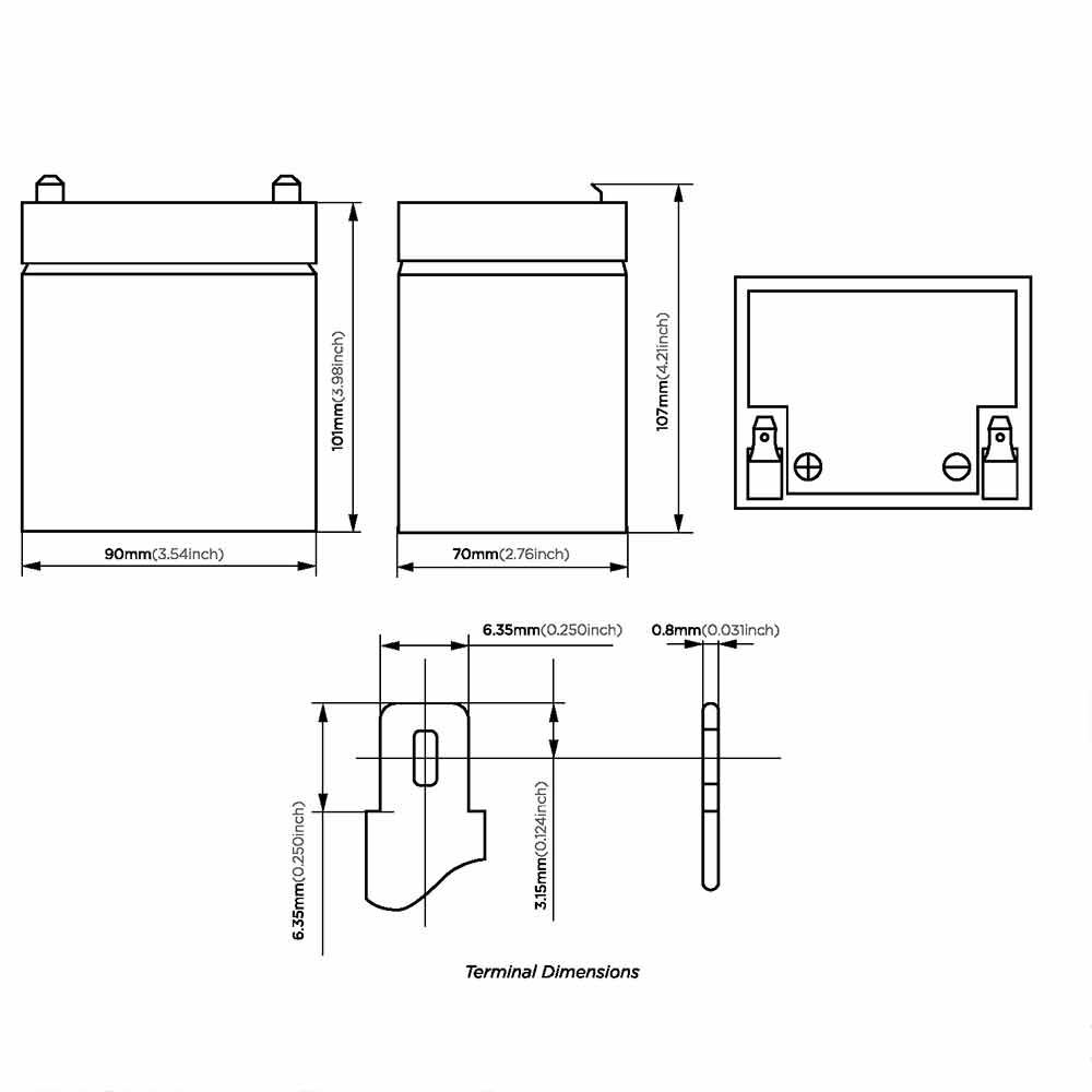 - existing battery dimensions (Length x Width x Height)
